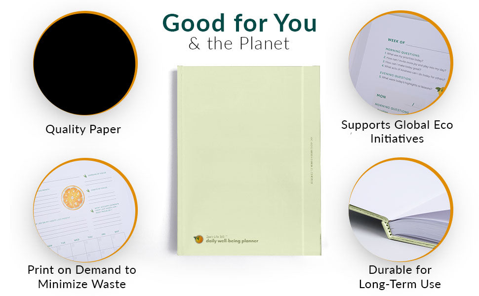 This planner was born from a lifetime of navigating life’s ups and downs, with the intention to empower you toward a balanced, joyful, and fulfilling life by making small, sustainable progress across various life domains. Rooted in the science of positive psychology and the art of mindfulness, it encourages you to embrace self-acceptance, awareness, love, and kindness—towards yourself and others.We offer a unique Zesty Life model that helps you identify what truly matters and guides you in pursuing your authentic dreams. This planner isn’t about rigid schedules or strict rules. It’s about gently organizing your life in a way that feels meaningful and aligned with your values. After all, it’s your life—make your own rules.Our planners are intentionally designed to be updated, so you can start anytime and easily pick up where you left off, even during vacations or breaks.