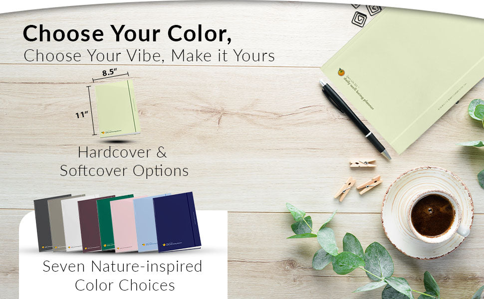 Our planner encourages you to gently weave more positive actions into your daily routines with research-backed strategies like goal-setting and habit formation. To make the most of your journey, we encourage you to check in with yourself on your progress regularly. In addition, incorporating reflective writing into your day and establishing a regular habit of expressing gratitude can profoundly shift your mindset and well-being.