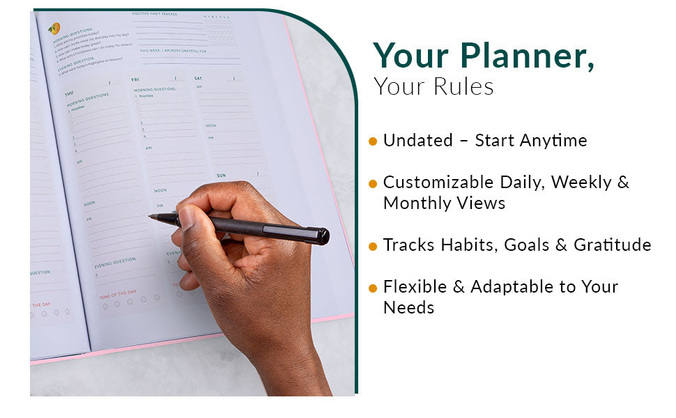 Our planners are intentionally designed to be undated, so you can start anytime and easily pick up where you left off, even during vacations or breaks.
